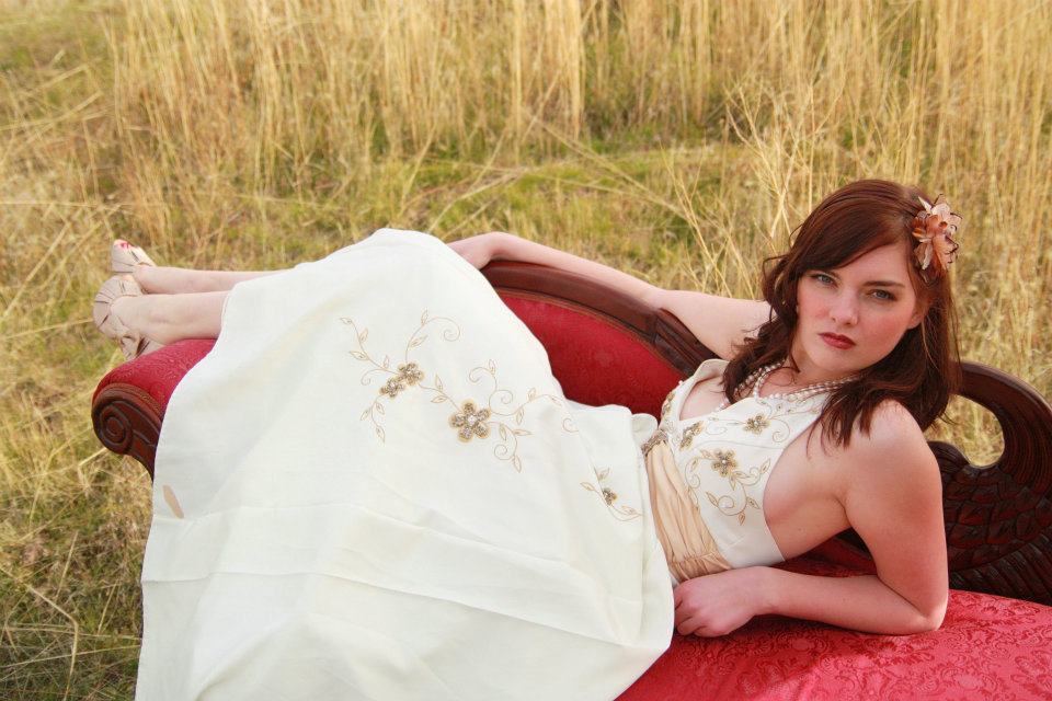 In 2010 Mark and I saw pictures from a friends brothers wedding (taken by another photographer) that inspired us. The location was so beautiful! For those of you who have done photoshoots with us before you know how I feel about tall, yellow..... dead grass. When you put it that way it sounds ugly, but I love the colors it brings out. Mark and I have been searching for this place on and off since 2010. WE FOUND IT! Mark analyzed the inspiring pictures and mapquested zooming in on the pictures to find specific landmarks. Our beauitful roommate (at the time) was nice enough to help us out with an idea that was running through my head. My mother in law bought us a beautiful chaise lounge that I was just itching to use as a prop, and theis place was perfect to use it at.
